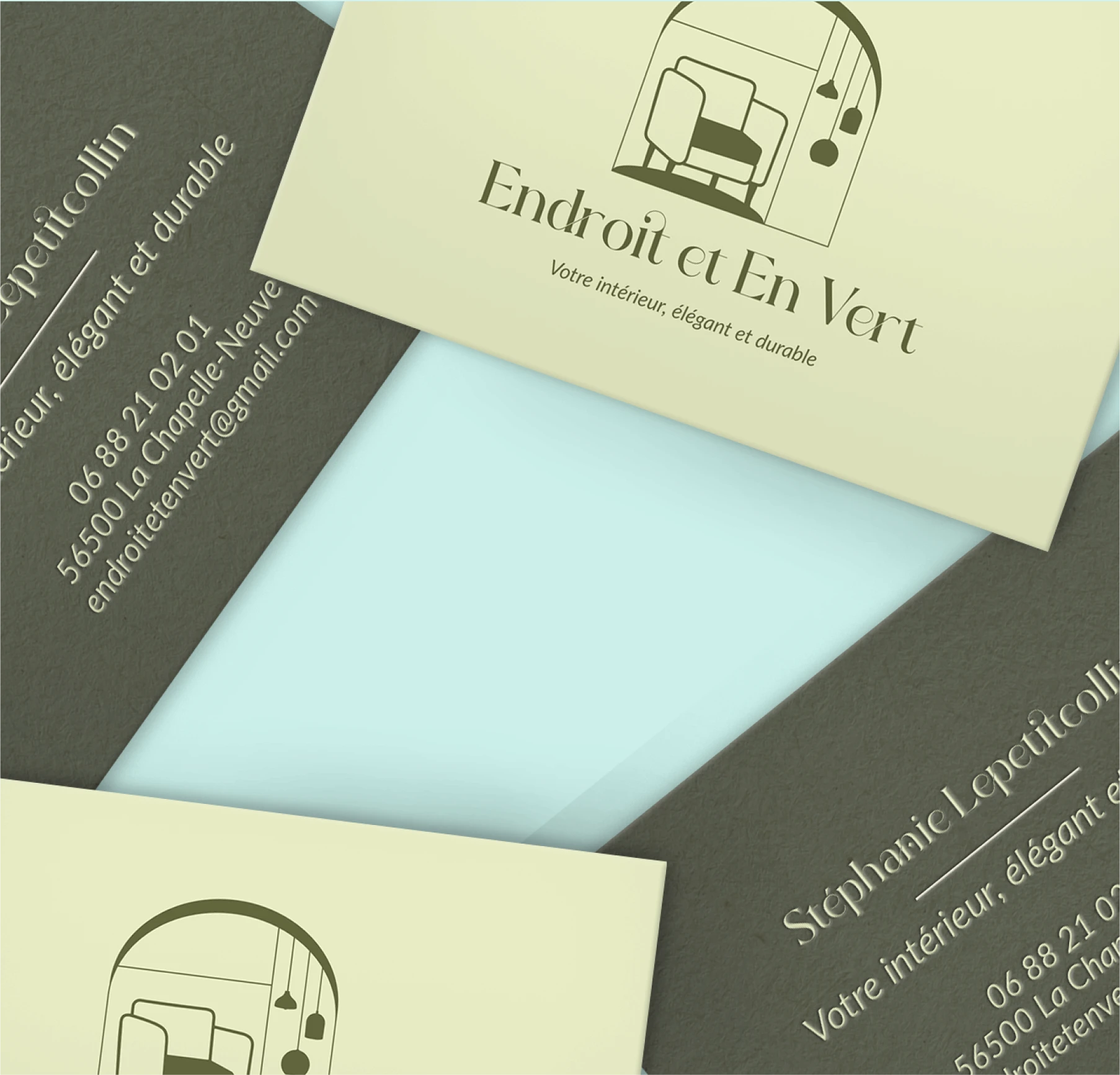 Endroit et En Vert est un logo que j’ai conçu dans le cadre de mes études, pour un workshop avec ma cliente, Stéphanie Lepetitcollin. Le design s’articule autour de plusieurs éléments clés. L’arche évoque un intérieur chaleureux et élégant. Le fauteuil et les luminaires symbolisent son activité de tapissière et décoratrice. La palette de verts naturels reflète ses valeurs de durabilité et de respect de l’environnement. Ce rebranding met en avant un savoir-faire artisanal et des créations uniques pour des intérieurs élégants et durables.